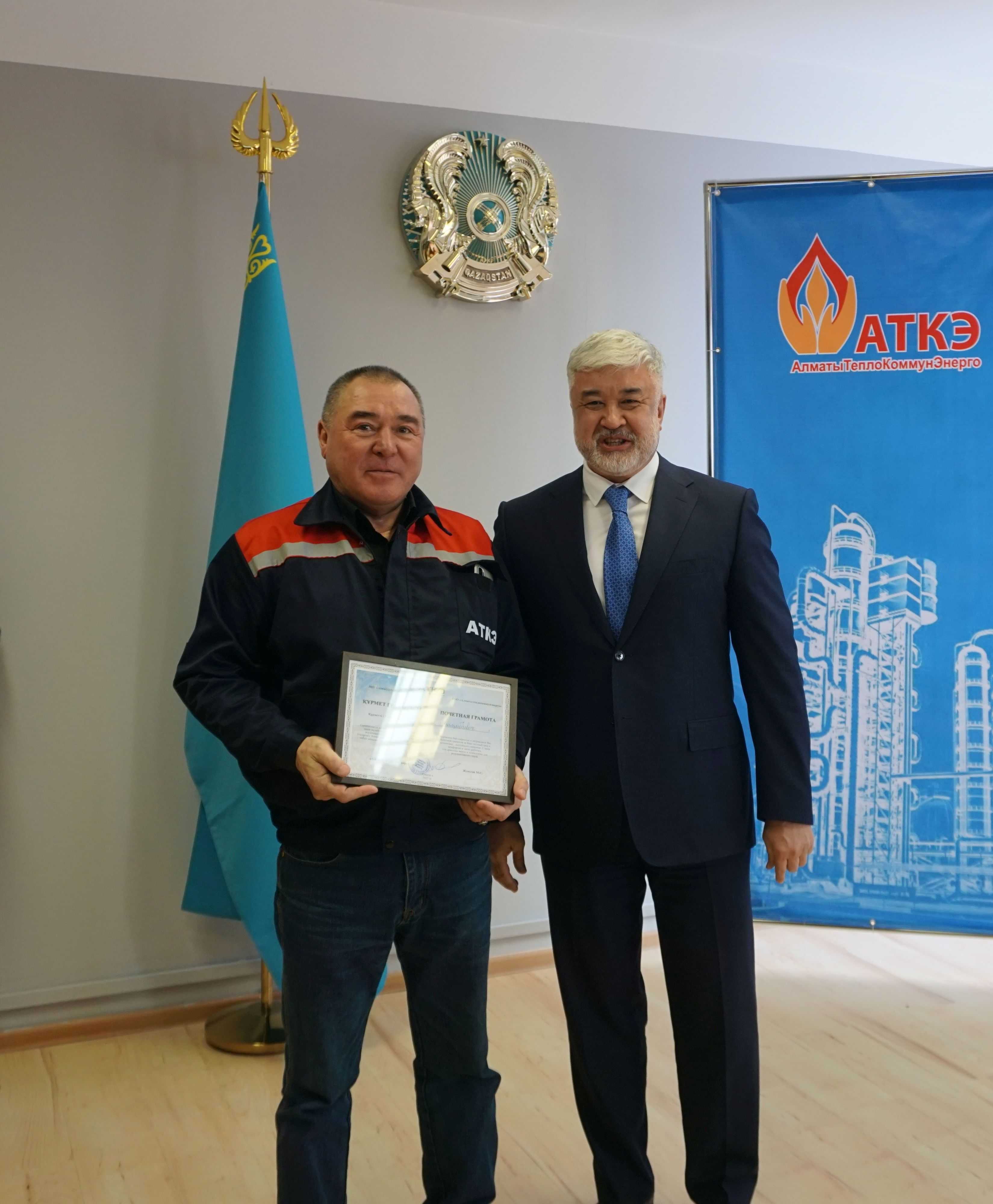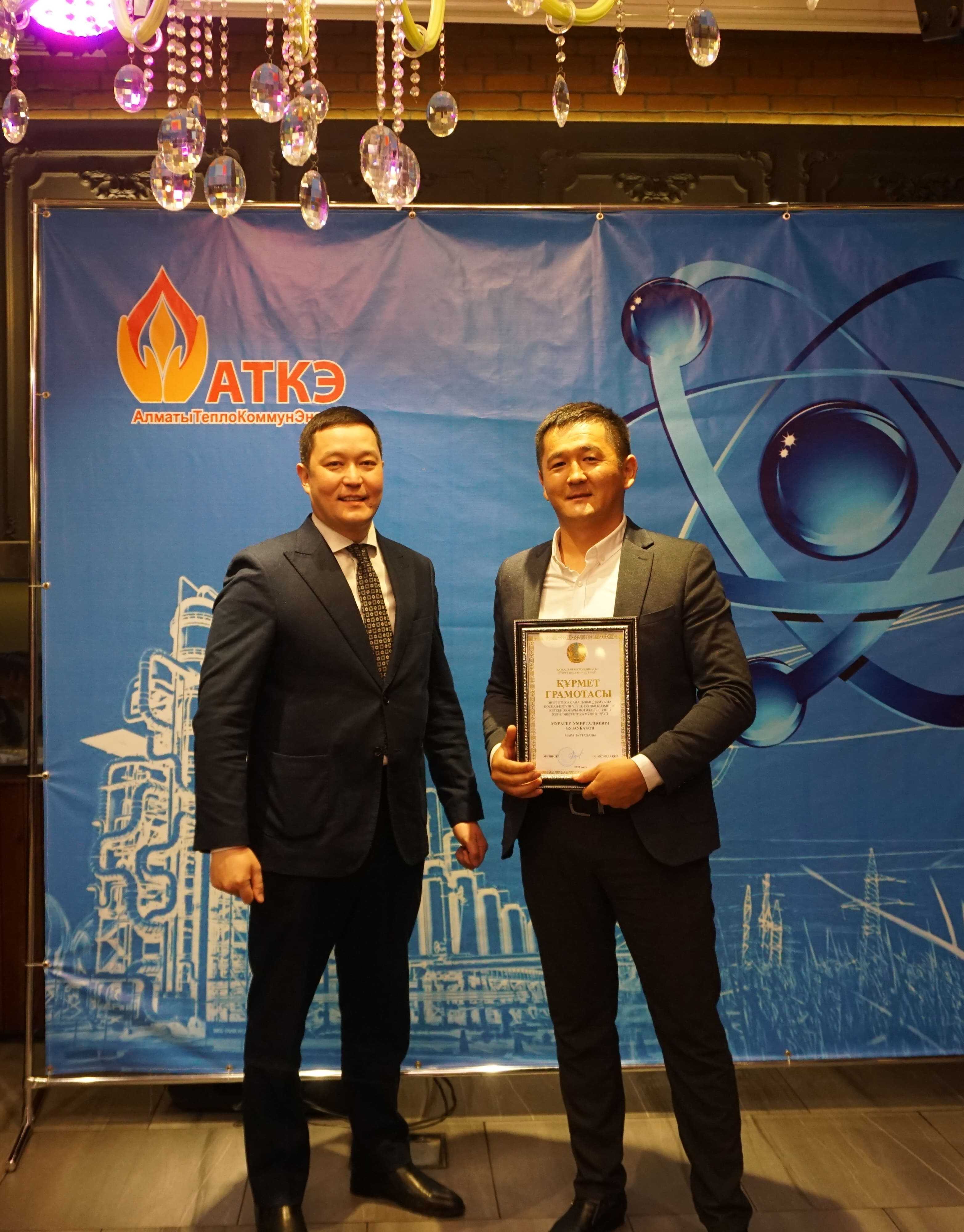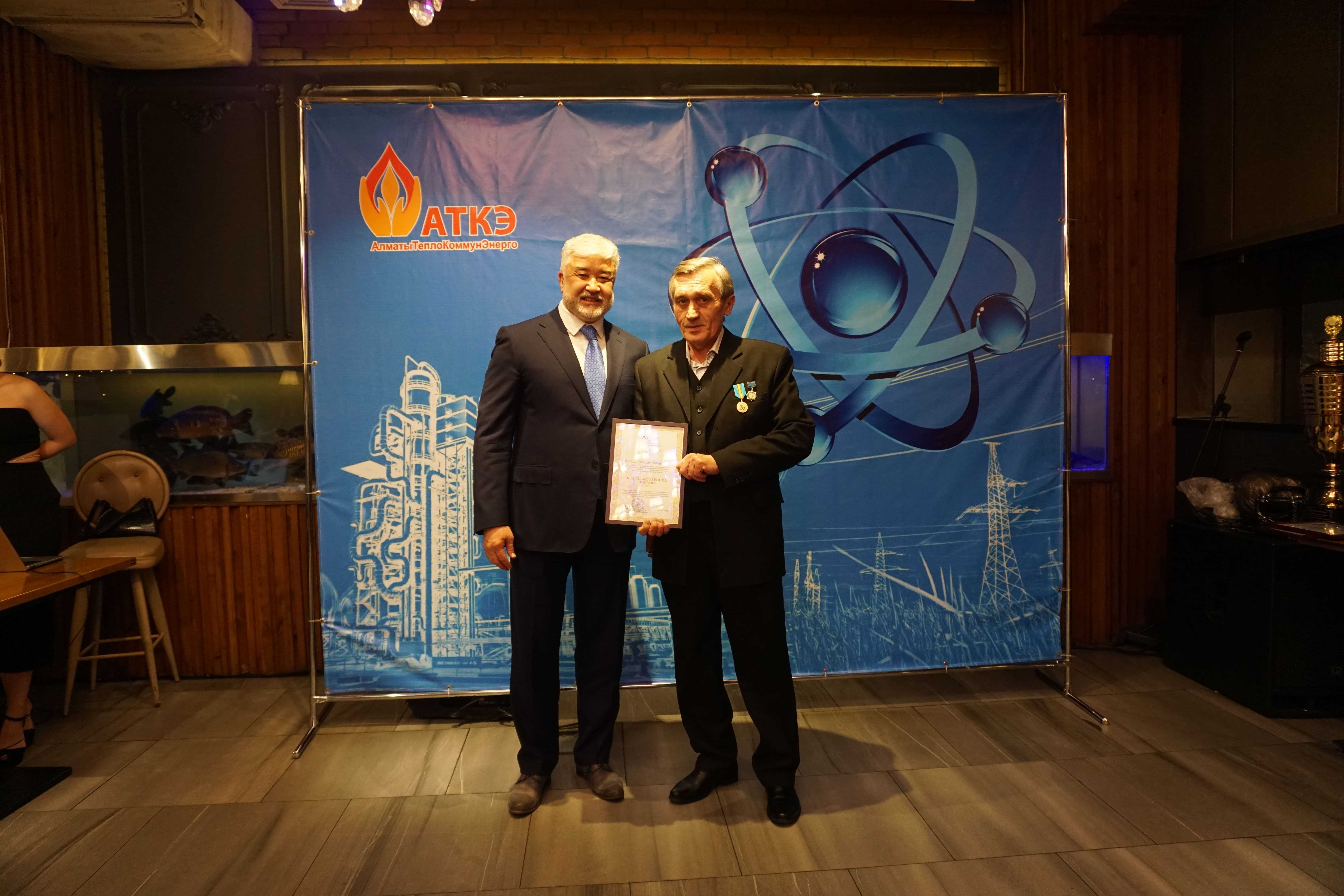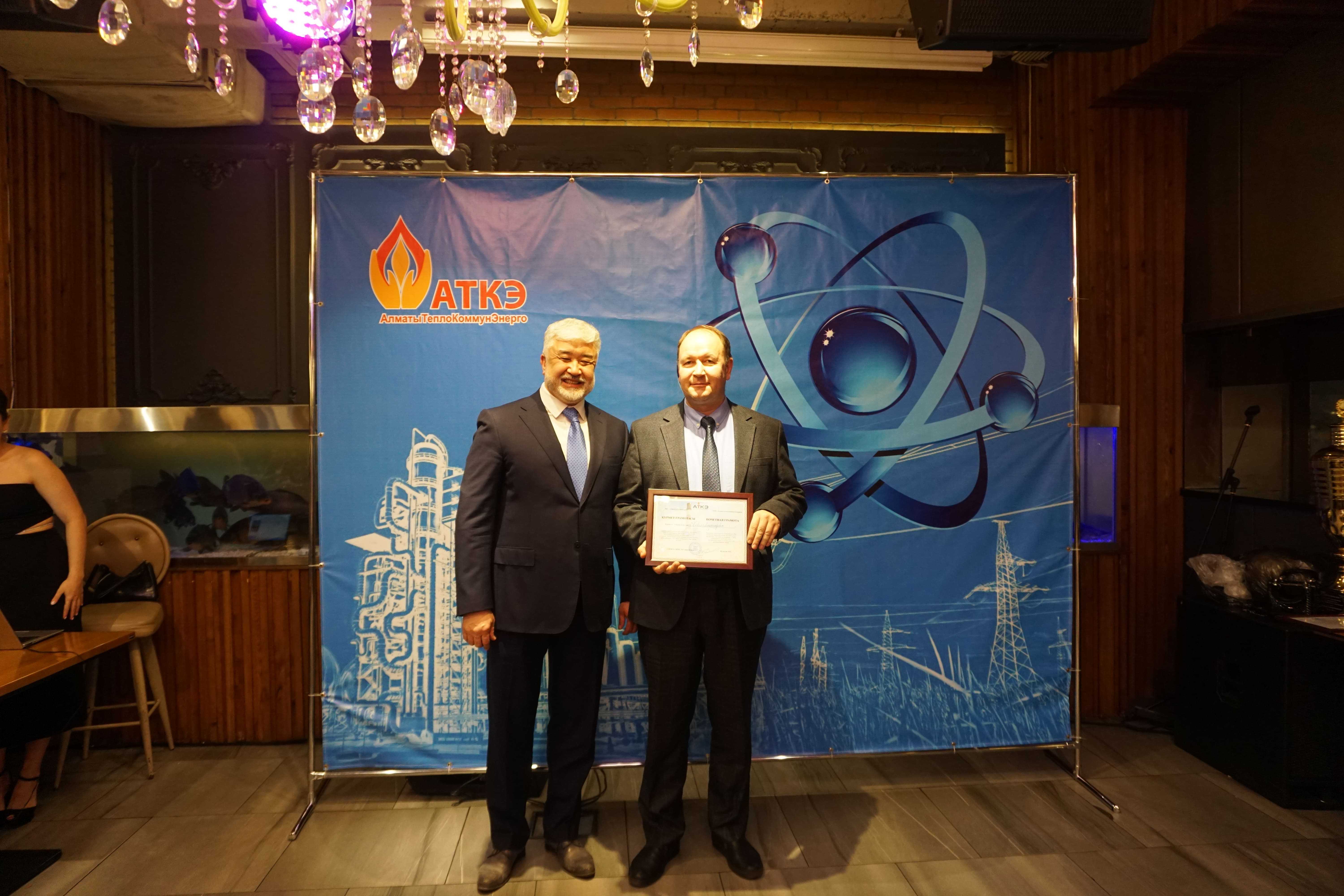 На церемонии были вручены нагрудные знаки РК от Министерства энергетики  «Еңбек сіңірген энергетик», «Құрметті энергетик», почетные грамоты и благодарственные письма от акимата города Алматы , КГУ «Управления энергетики и водоснабжения г. Алматы» и ТОО “Алматытеплокоммунэнерго”. Поздравили и наградили сотрудников за высокое профессиональное мастерство и личный вклад в развитие предприятия руководитель управления энергетики и водоснабжения города Алматы -Алин С.М. , генеральный директор ТОО “АТКЭ”- Жунусов М.С. , главный инженер ТОО “АТКЭ” - Дюсенов С.О., заместитель генерального директора по экономике и финансам ТОО “АТКЭ” - Иппергенов Т.С., заместитель генерального директора по обеспечению производства ТОО “АТКЭ”  - Нугарбеков Д.К., Заместитель главного инженера ТОО “АТКЭ” - Леденцов П.А.