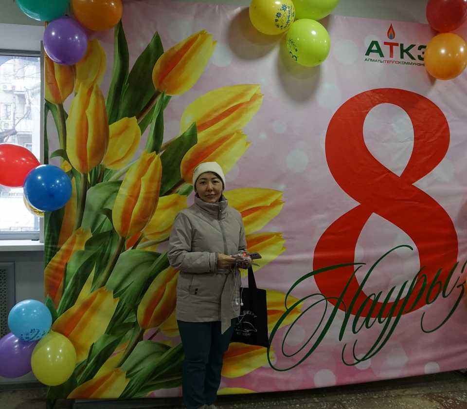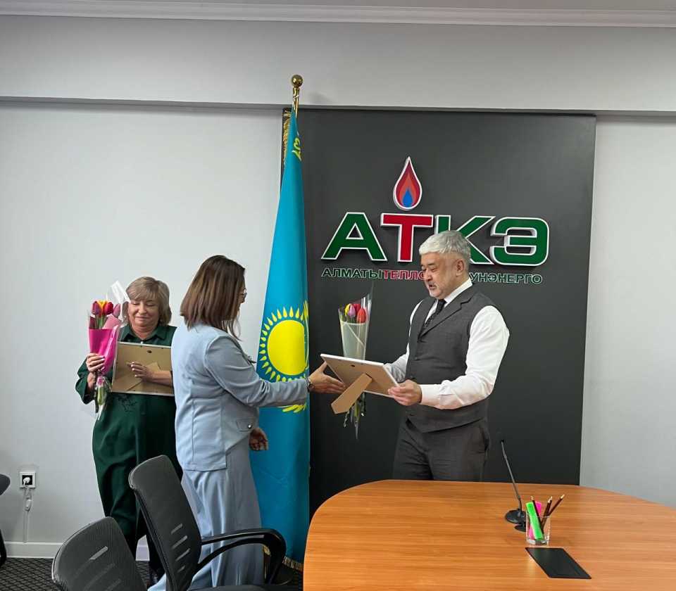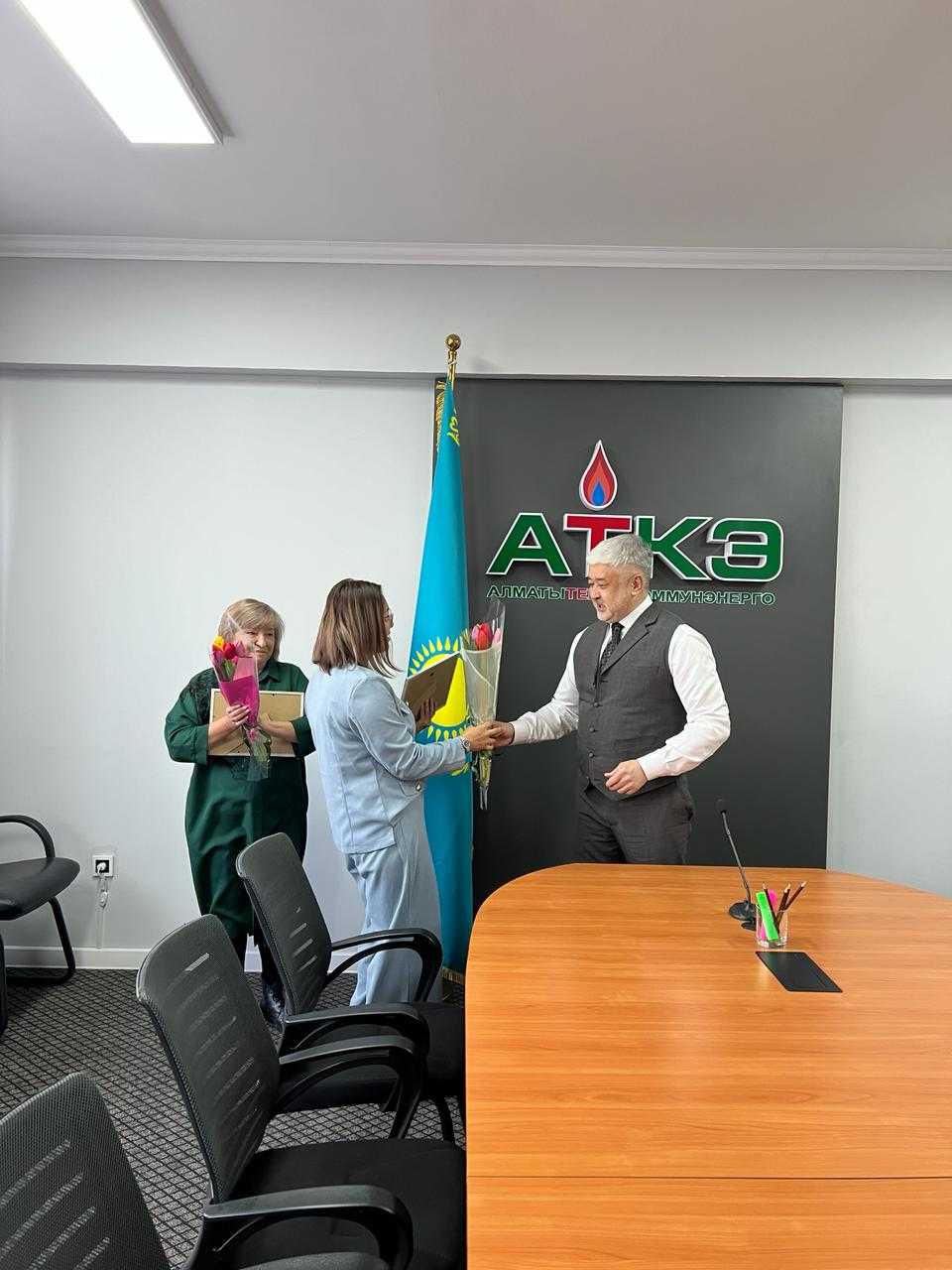 Поздравление прекрасной половины коллектива ТОО "Алматытеплокоммунэнерго" с Международным женским днём и вручение благодарственных писем от Акима города Алматы Досаева Е.А.