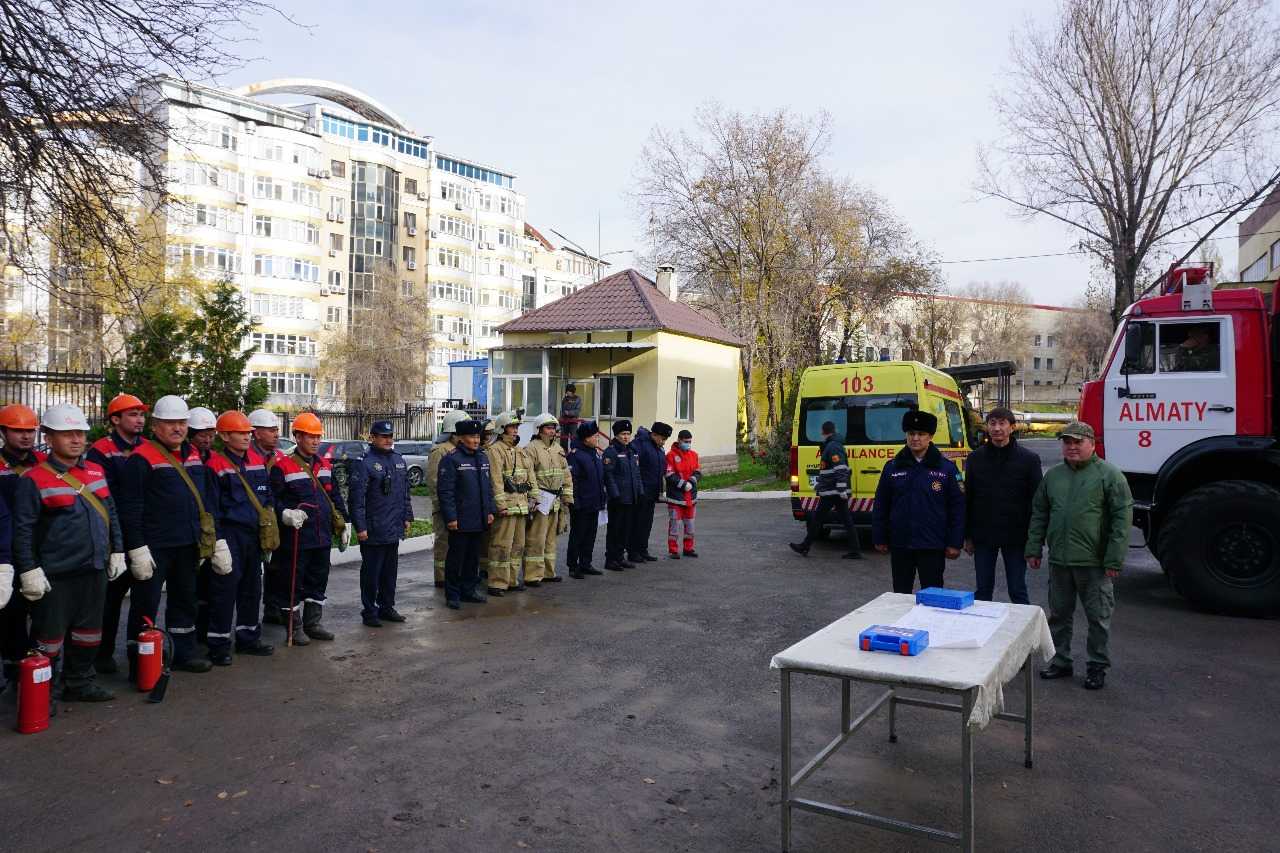 В учениях, кроме объектовых формирований ТОО «АТКЭ» в количестве 49 человек, было задействовано 16 единиц техники МЧС и пожарной службы, службы скорой помощи, Управлений полиции, сотрудников Акиматов и УЧС районов.