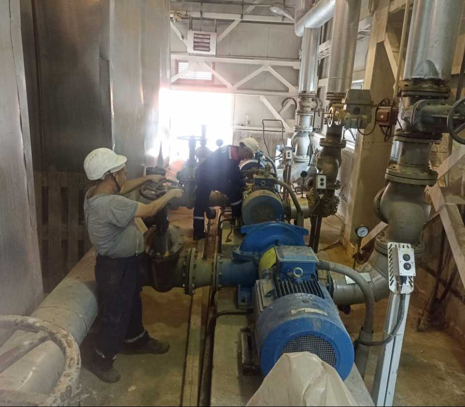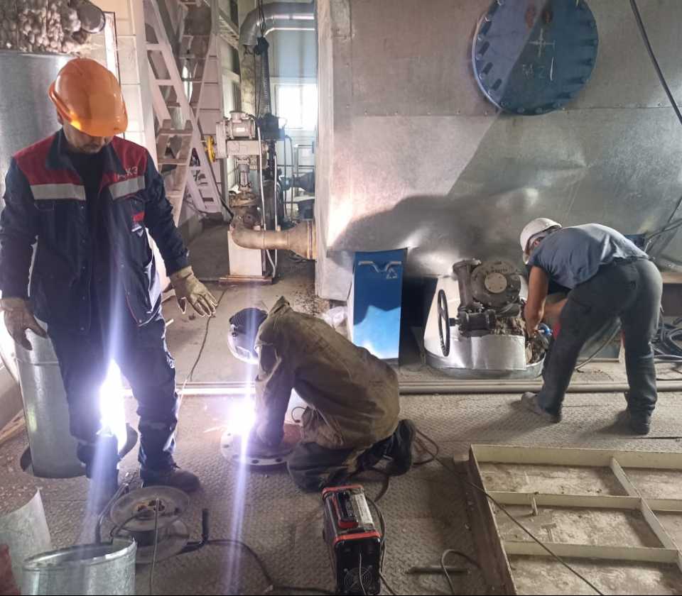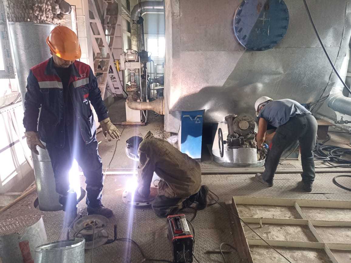 На сегодняшний день ремонтные работы основного и вспомогательного оборудования подходят к завершающему этапу. Произведены работы по очистке деаэраторной установки, обеспечивающий удаление агрессивных газов из состава воды, произведена замена запорных арматур, также произведена замена фильтрующих материалов для умягчения воды с целью избежания отложении внутрикотловых поверхностей. Произведен текущий ремонт всего электрооборудования котельной (силовых трансформаторов и высоковольтных вакуумных выключателей). Произведен осмотр аккумулирующих баков готовой воды, емкостей хранения аварийного топлива, выполнена их опрессовка давлением выше номинального.