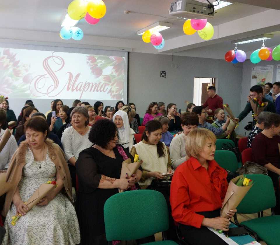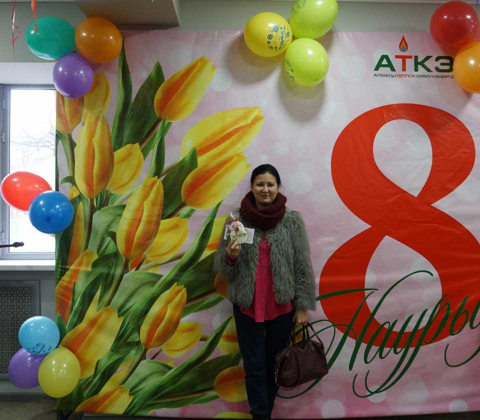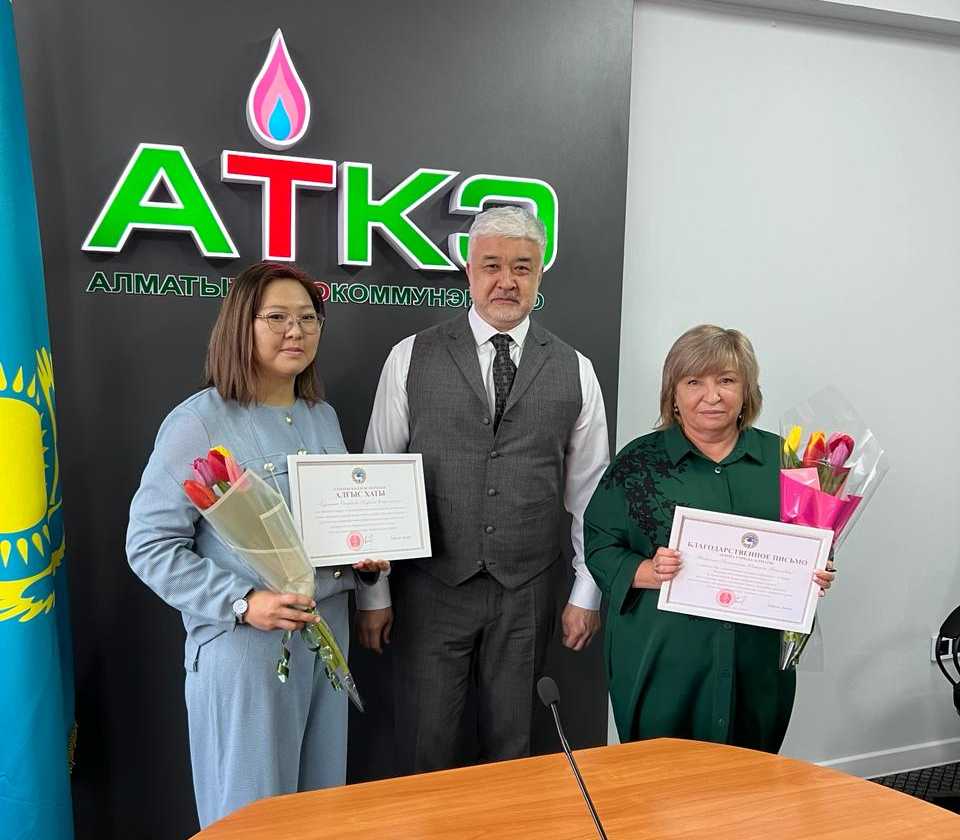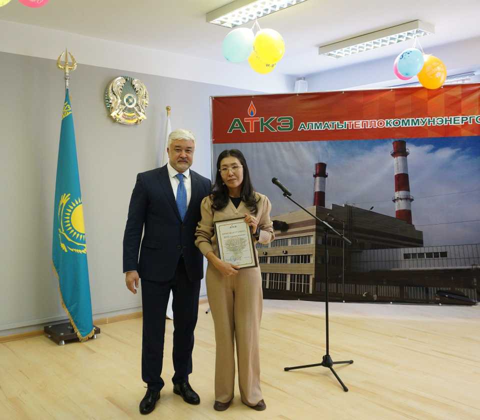 Поздравление прекрасной половины коллектива ТОО "Алматытеплокоммунэнерго" с Международным женским днём и вручение благодарственных писем от Акима города Алматы Досаева Е.А.