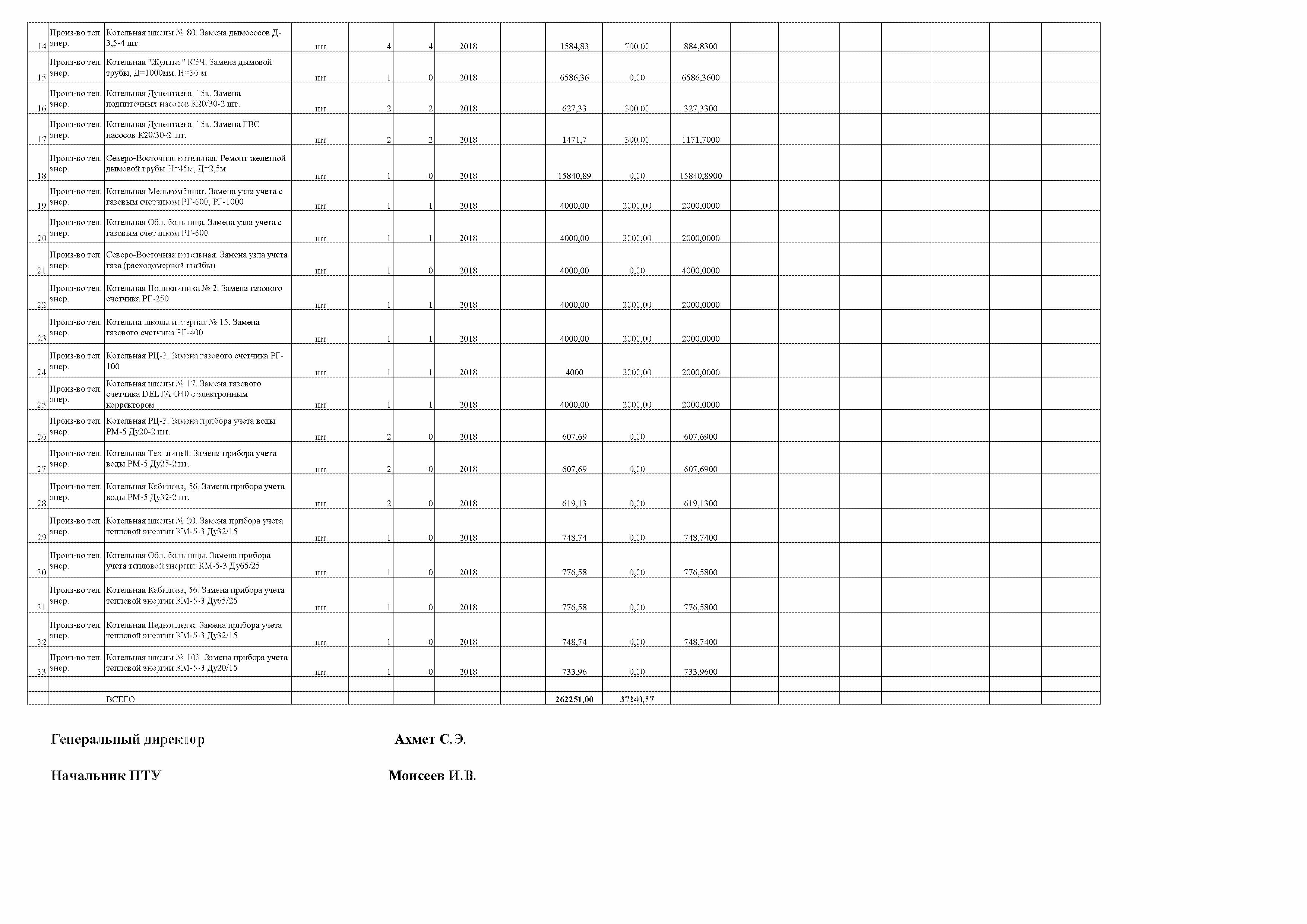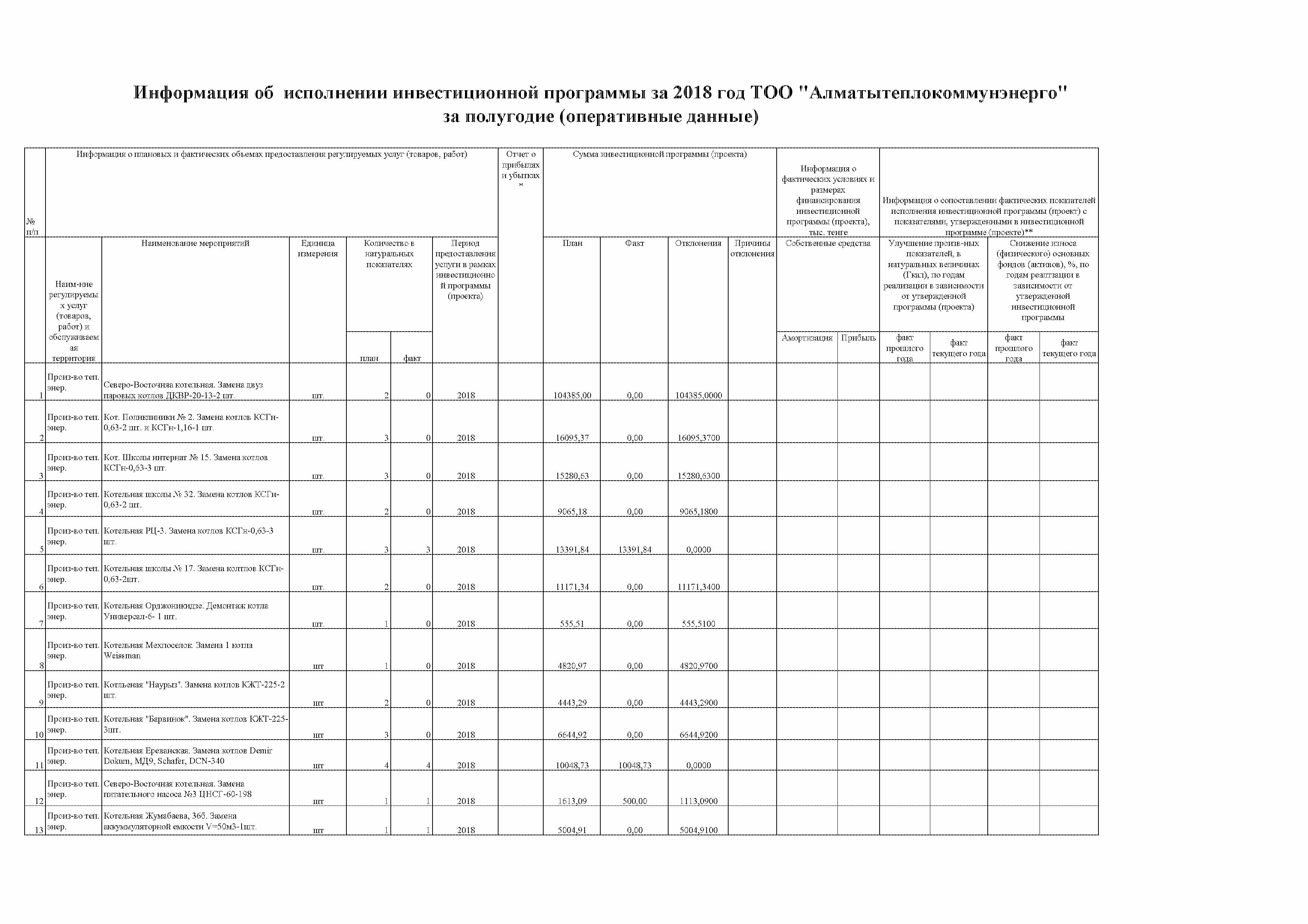 Информация об исполнении инвестиционной программы за 2018 год ТОО "Алматытеплокоммунэнерго" за полугодие (оперативные данные)