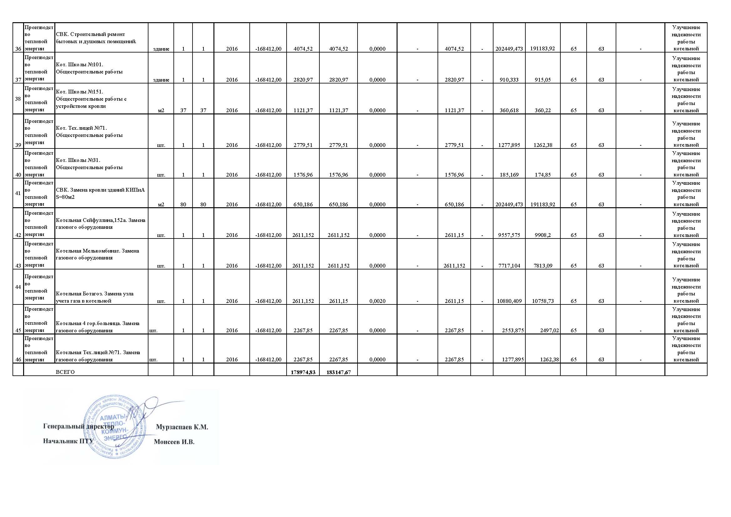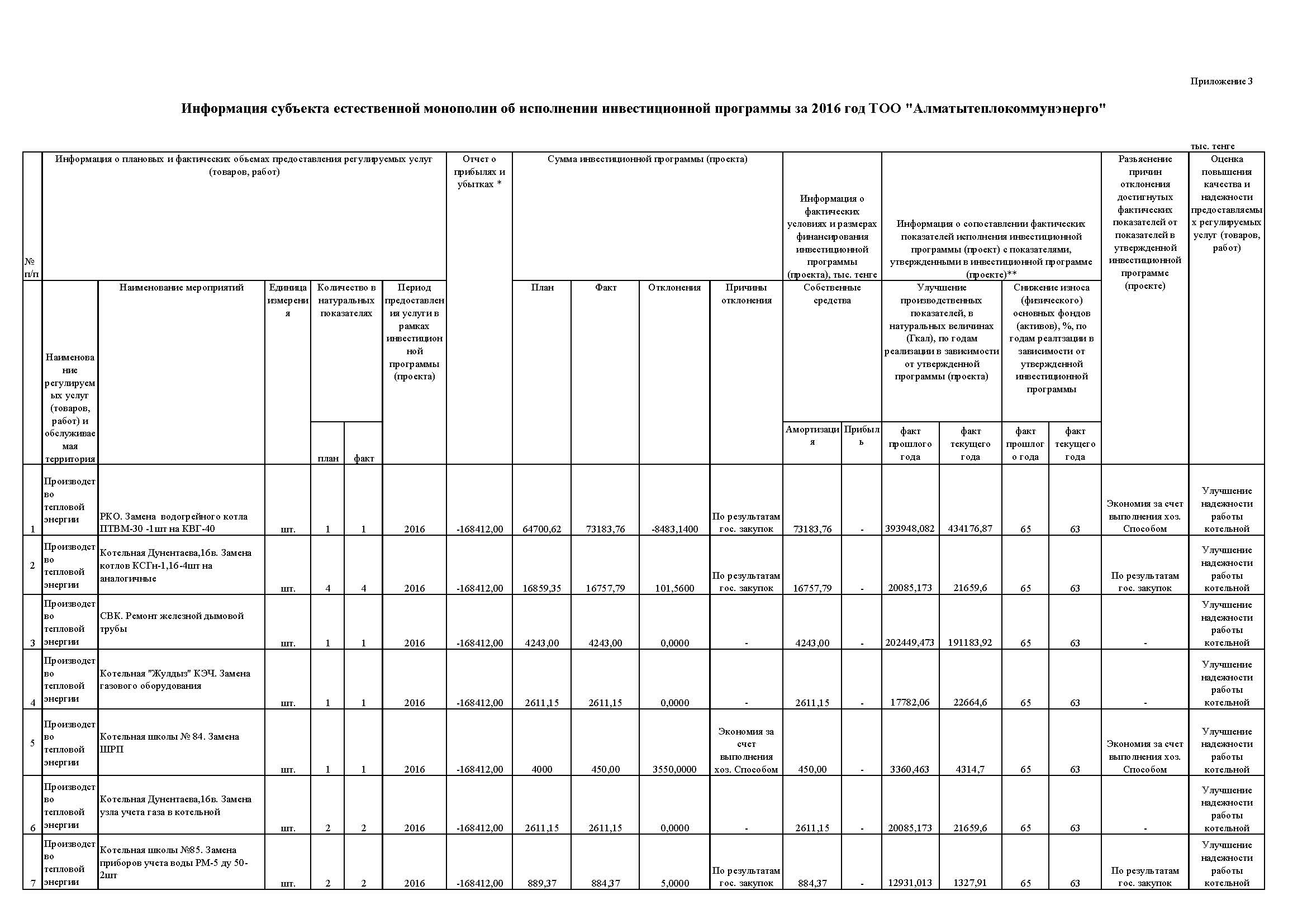 Информация субъекта естественной монополии об исполнении инвестиционной программы за 2016 год ТОО "Алматытеплокоммунэнерго"