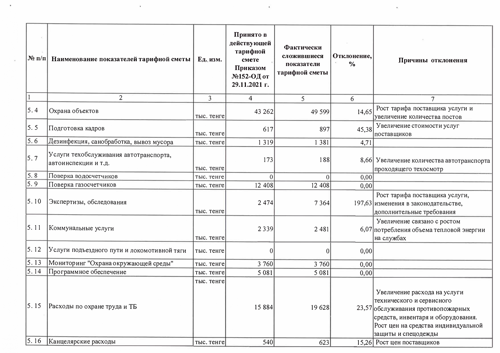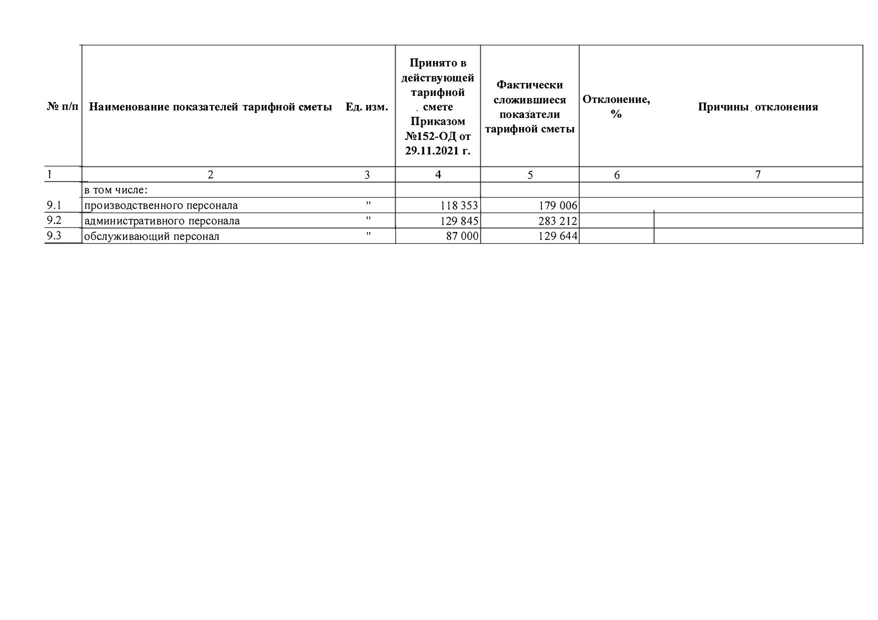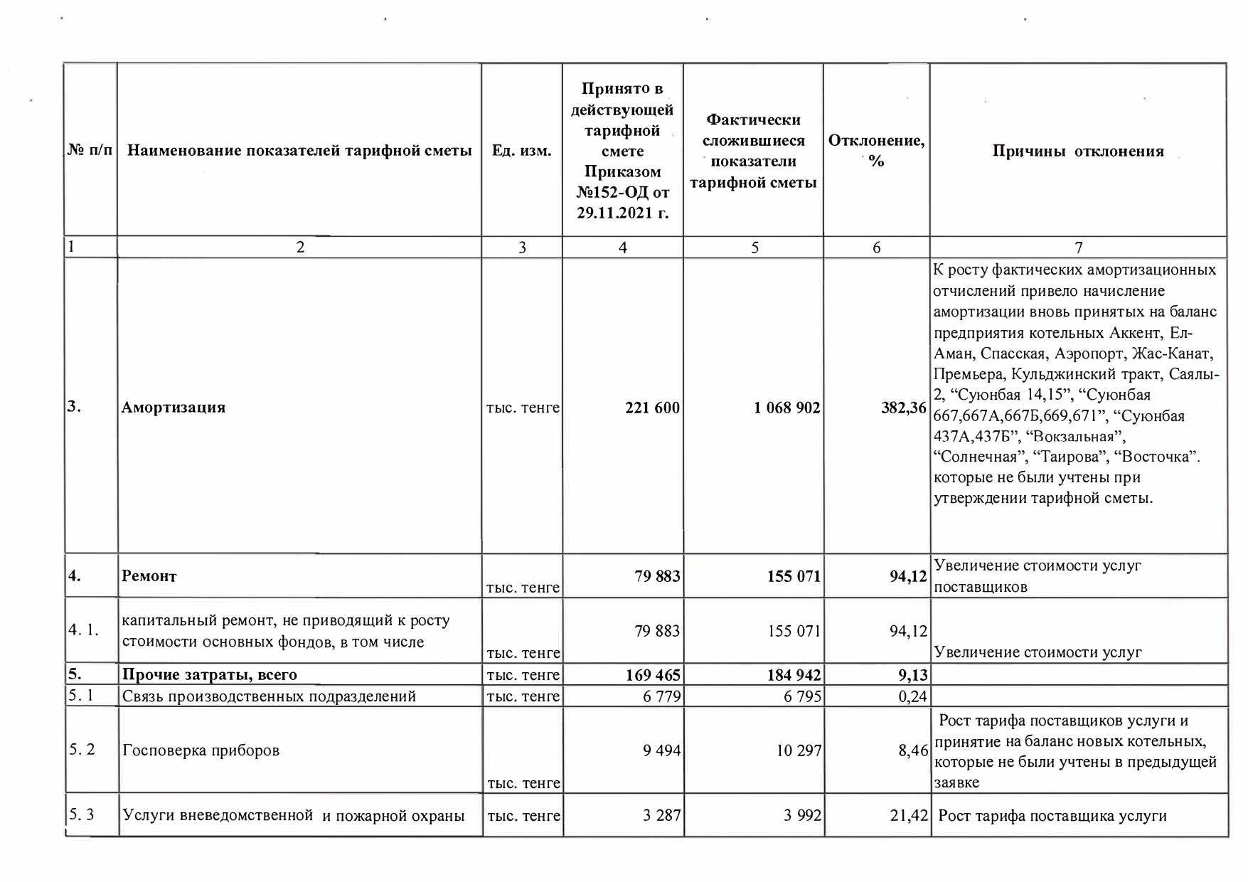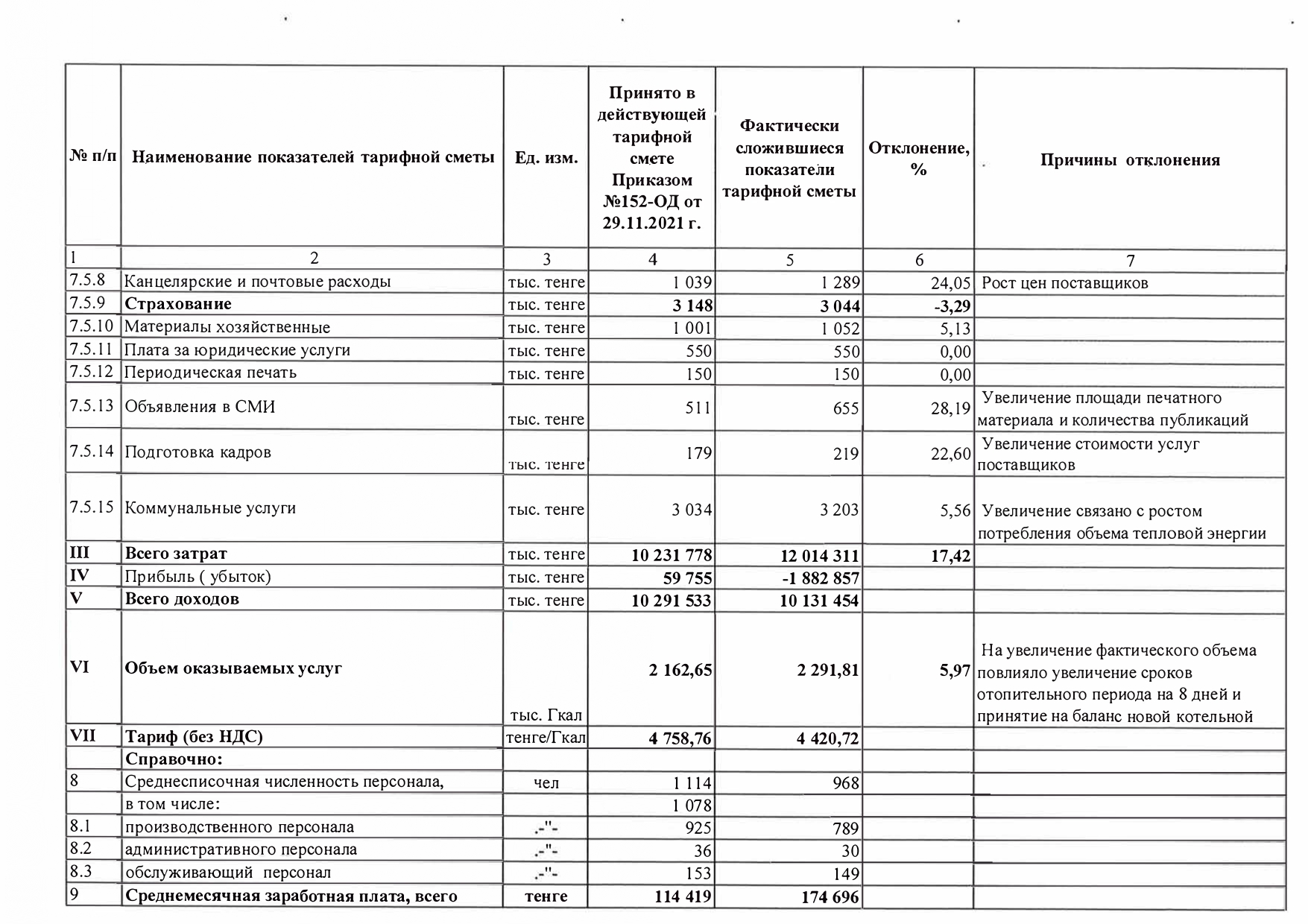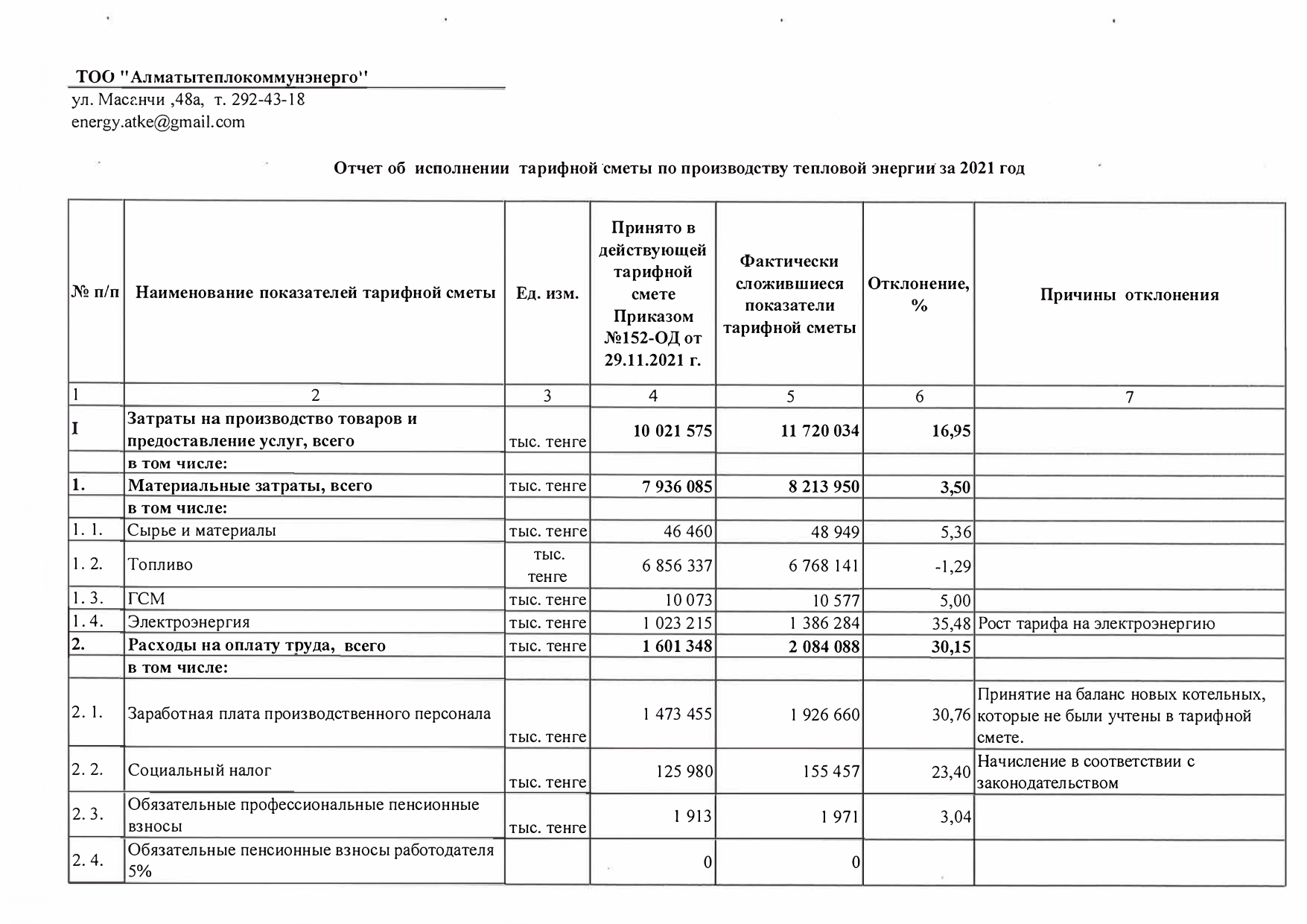 Отчет об исполнении тарифной сметы по производству тепловой энергии за 2021 год