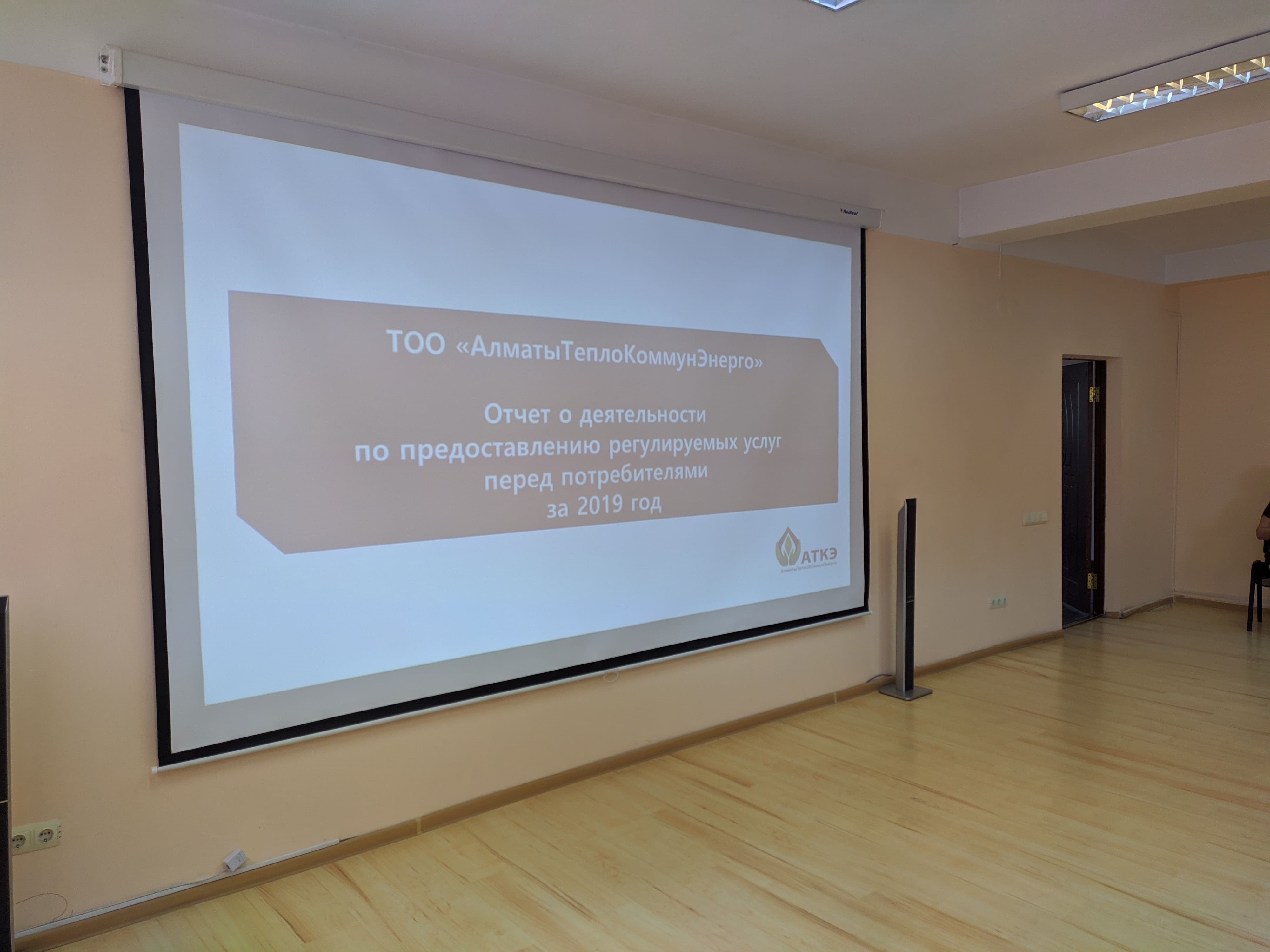 28 мая 2020 года Тоо «Алматытеплокоммунэнерго» проведены слушания отчета об исполнении тарифной сметы, об исполнении инвестиционной программы перед потребителями и иными заинтересованными лицами по предоставлению регулируемых услуг по производству тепловой энергии за 2019 год.